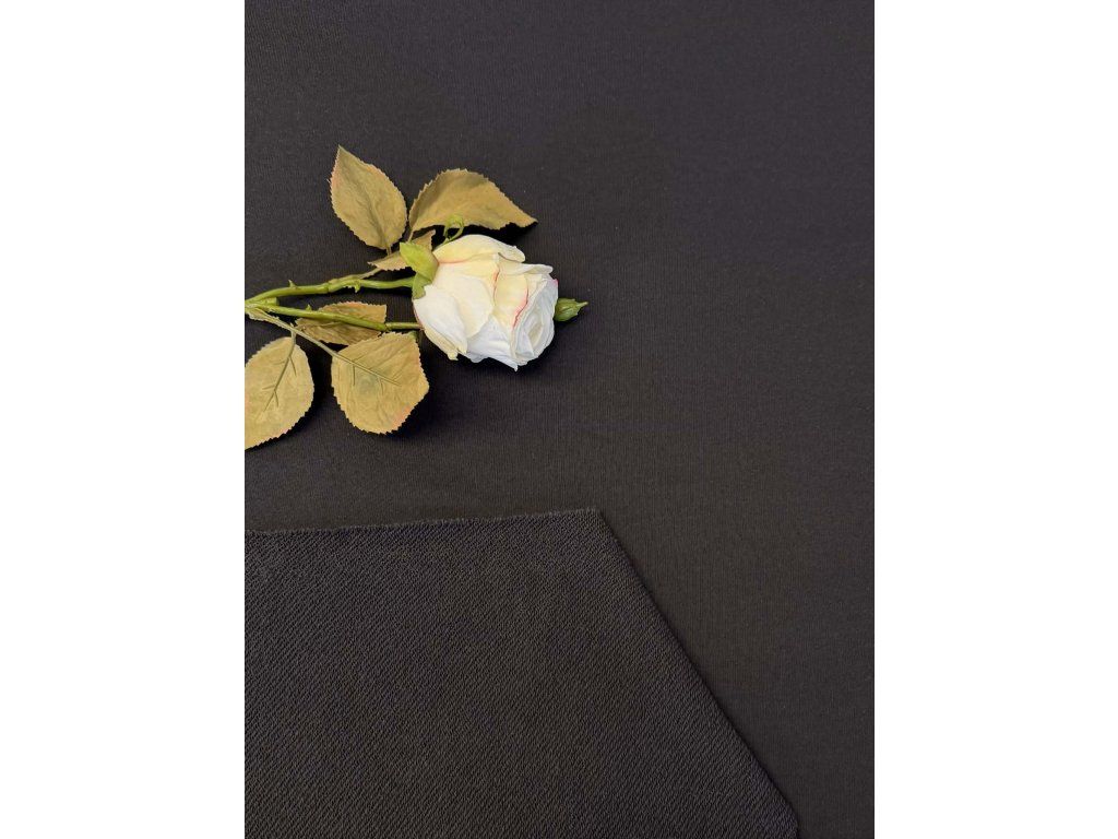 Díky vyšší gramáži krásně drží tvar, nepůsobí „hadrově“ a výsledné kousky mají pevnost i profesionální vzhled. Příměs elastanu zajišťuje tvarovou stálost, pružnost a pohodlí při nošení – materiál se přizpůsobí pohybu, ale zároveň se nevytahuje.