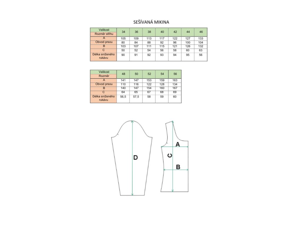 | Celková spotřeba látky vel. 54- 56: | 1,9 m při šíři materiálu 160 cm |