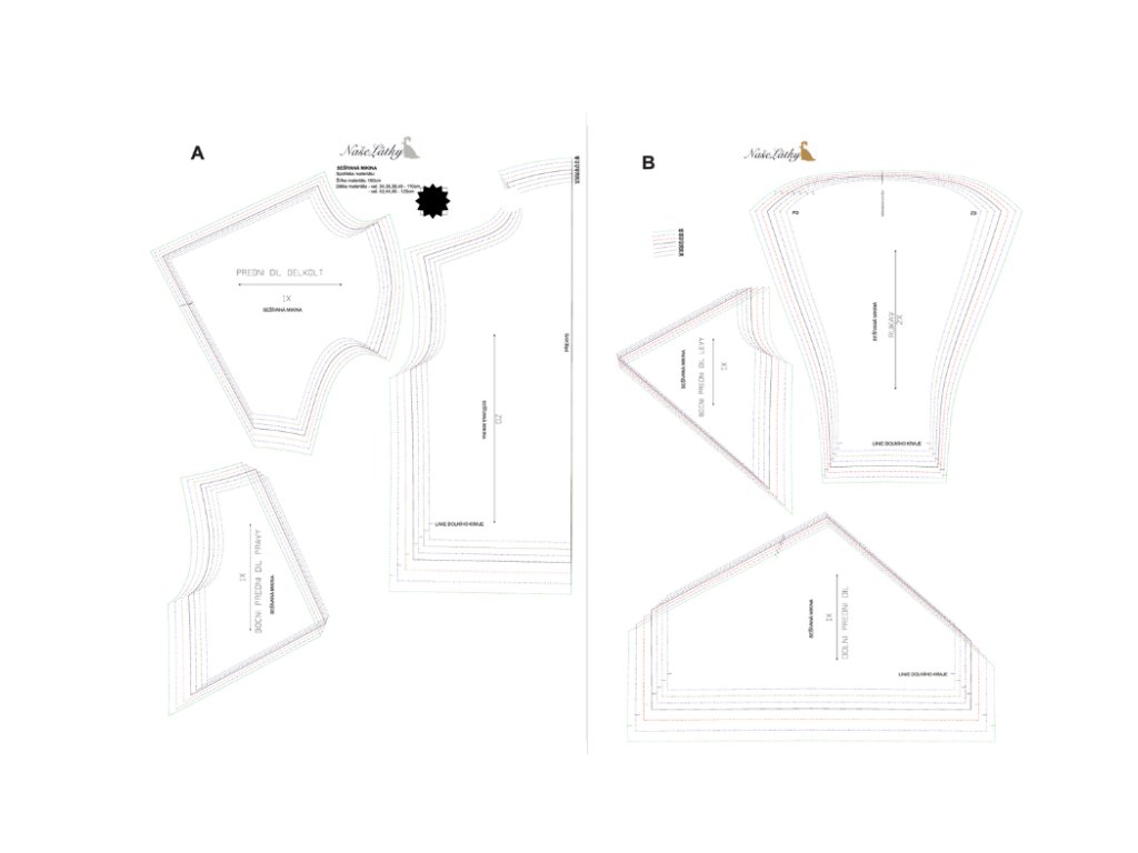 | Celková spotřeba látky vel. 42- 46: | 1,4 m při šíři materiálu 160 cm |