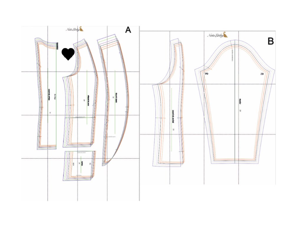 | Celková spotřeba látky vel. 52,54: | 2 m vzor, šíře 180 cm, 1 m podsádka |