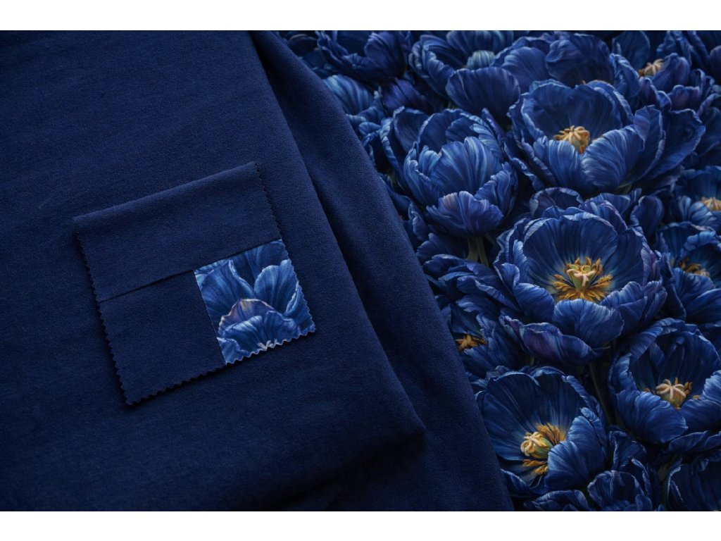 Teplákovina nepočesaná, Tmavomodré tulipány, digitální tisk