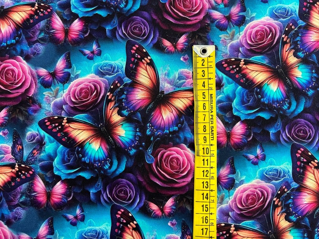 Tento krásný svěží vzor motýlů na tyrkysovém podkladu přináší do vašeho šatníku nádech lehkosti a volnosti. Barevné motýli na tyrkysové podložce vytvářejí úžasný kontrast, který oživí každý outfit. Ideální pro šití letních šatů, topů nebo tunik, tento vzor vám dodá nejen svěží vzhled, ale také pocit svobody a elegance. Perfektní volba pro všechny, kdo chtějí zazářit s originálním a pozitivně laděným designem.