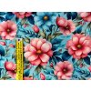 Tento vzor s krásnými růžovými květy na modré je ideální pro letní outfity plné energie a svěžesti. Nádherný design je perfektní pro šití rozverných letních šatiček, ale i pro pohodlná upnutá trička a tílka. Tento vzor přináší do vašeho šatníku jemnost, eleganci a hravost, která vás bude provázet horkými dny plnými slunce.
